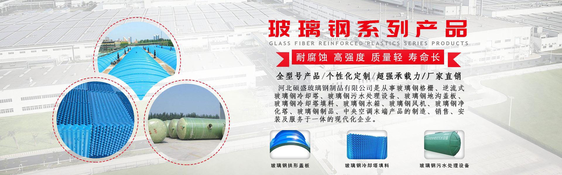 河北碩盛玻璃鋼制品有限公司,是從事洗車房玻璃鋼格柵蓋板、玻璃鋼拱形蓋板、玻璃鋼格柵蓋板、玻璃鋼地溝蓋板、玻璃鋼冷卻塔填料、橫流式玻璃鋼冷卻塔、逆流式玻璃鋼冷卻塔、玻璃鋼電纜橋架、玻璃鋼污水處理設備、污水池蓋板、玻璃鋼格柵、玻璃鋼冷卻塔、玻璃鋼水箱、玻璃鋼風機、玻璃鋼凈化塔、玻璃鋼制品、中央空調末端產品的制造、銷售、安裝及服務于一體的現代化企業。我公司已成為集工程預算、技術咨詢、產品設計、制造、安裝調試、售后服務于一體的公司,形成了一整套規范化、科學化、系統化管理體系。產品遍布天津、遼寧、山西、江蘇、內蒙、湖北、黑龍江、貴州等地區。